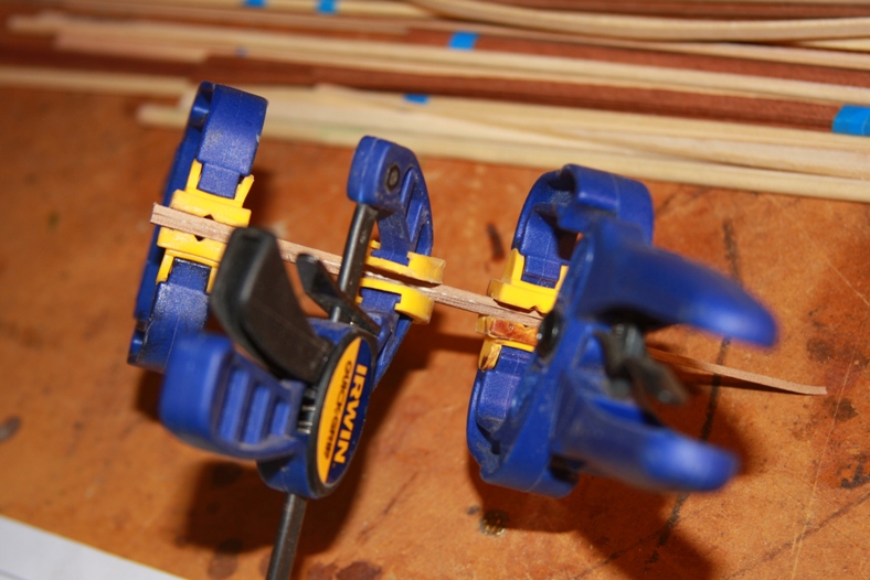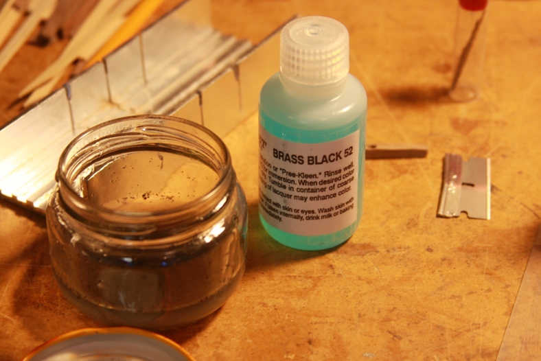 The bronze strips are cut, and carefully bent around the stock. I used super glue to hold them in place, then filed and sanded them down to make them look as seemless as possible.