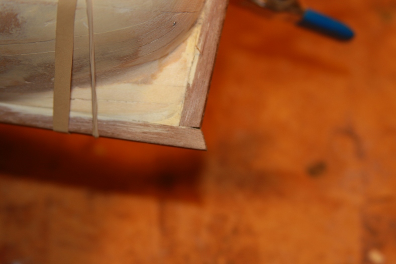 After all the strips are in place, holes are very carefully drilled for the nails / rivets. This is a very delicate process and I went through 3 broken drill bits getting these holes in place. Nales / rivets are trimmed so only the heads are available with about 1 mm of nail so they don’t go all the way through the rudder. They are nailed and glued in place.
