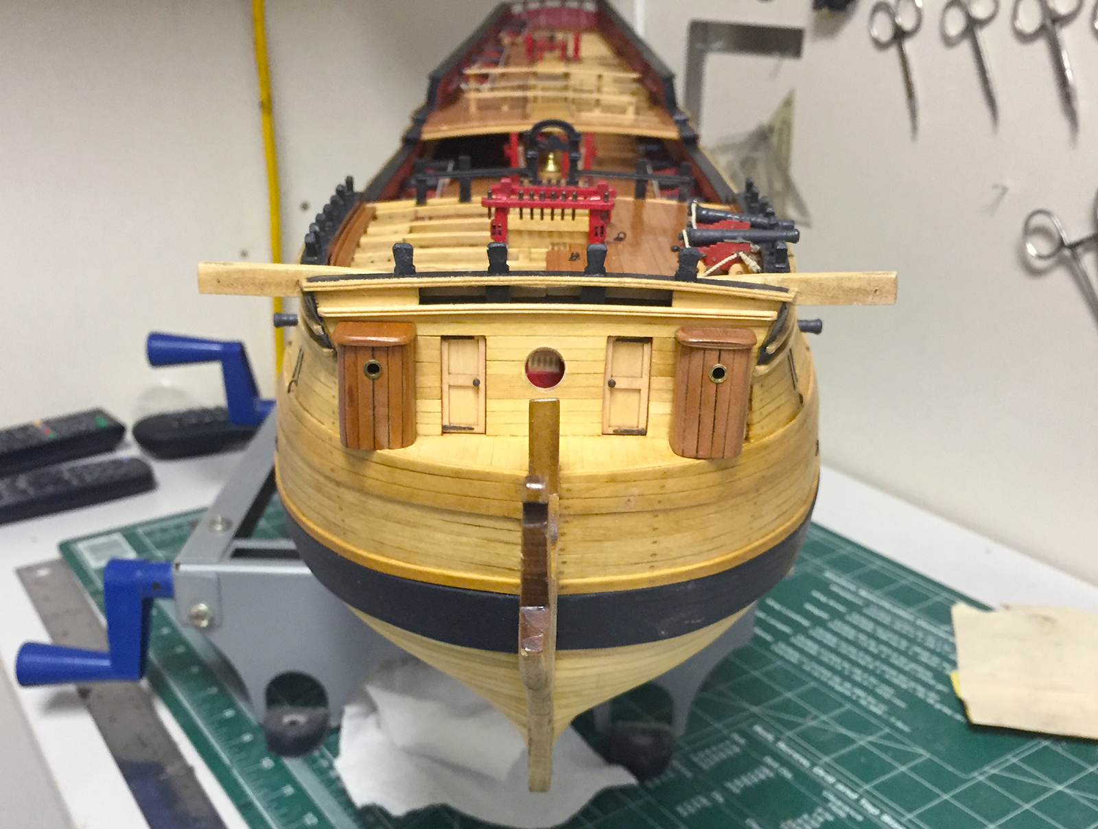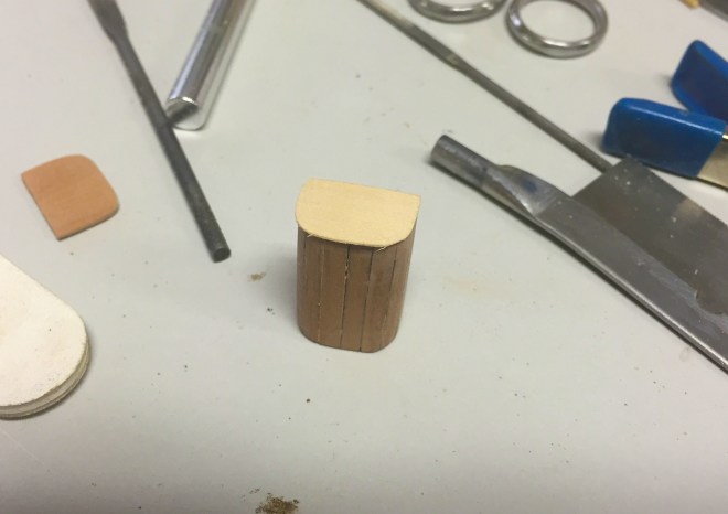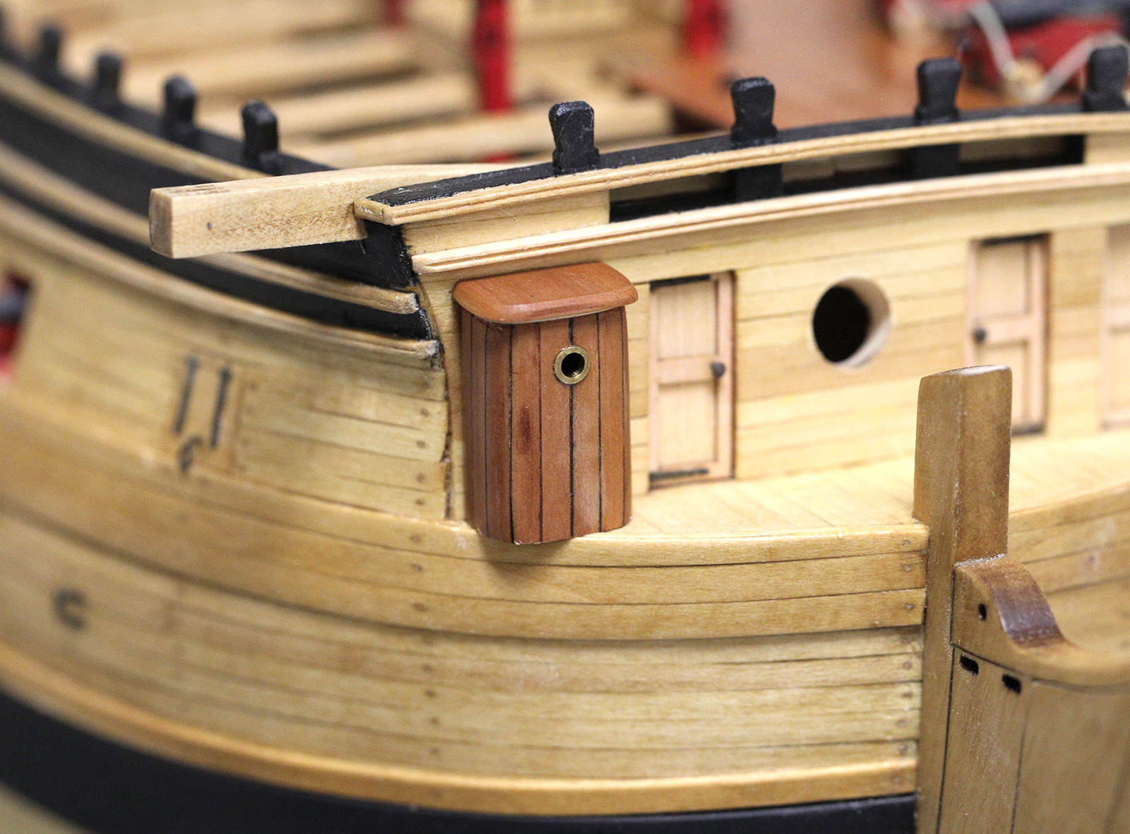 The ship’s roundhouses were at the fore of the ship on the bow. The Confederacy’s Roundhouses seemed to be pretty straightforward, however Augie had written in his notes that he was intending to use the Swiss Pear instead of the lightwood indicated in the plans. I really liked this idea, as it would surely set off a bit of color on the bow of the ship. It really didn’t change how I approached the Roundhouses initially, but soon after I discovered the slightly thicker Swiss Pear was going to involve a little more intricate bit of beveling than the stock parts.