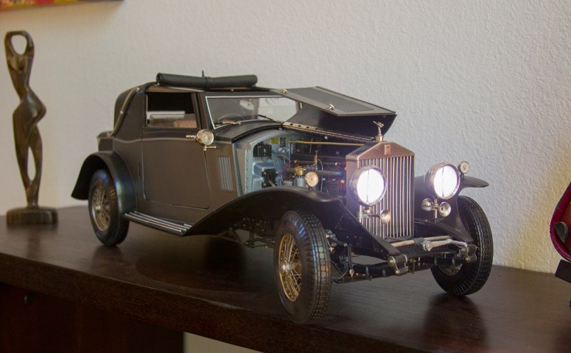 I came across this 1/8th scale 1932 Rolls-Royce Phantom II on E-bay, and decided to give it a shot. It’s by far the largest scale model I’ve put together which lends itself to some great detail – however also the possibility of being able to more clearly see errors.