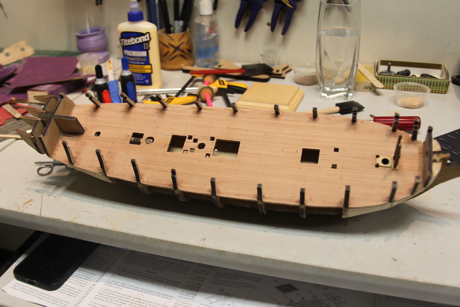 One common element of some model kits is that there isn’t much to the parts that are mostly unseen by the viewer. In other words – not a lot of elements that exist below the quarterdecks are included in these plans. So, one has to make a decision as to how many of these elements should be added to the build. My guideline tends to be – what can be seen through either the portholes, cannon ports, or through the deck grates.