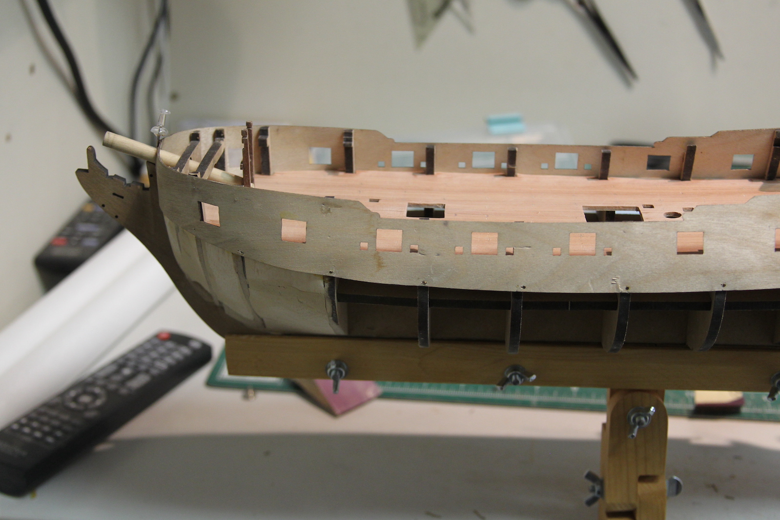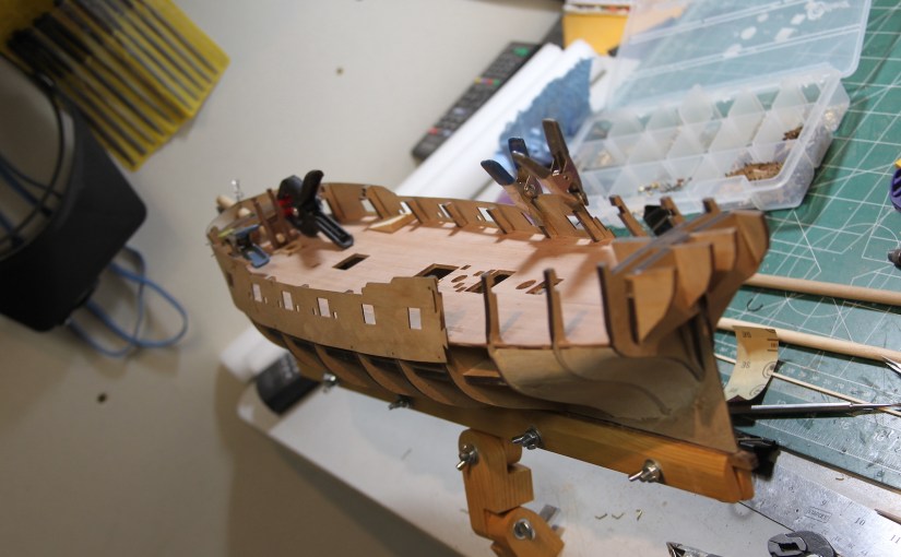 When the hull is planked, so shall the gun ports – so some imperfections will be covered. But, needless to say the smoother the job here, the easier it’ll be to have a smoothly planked hull later.