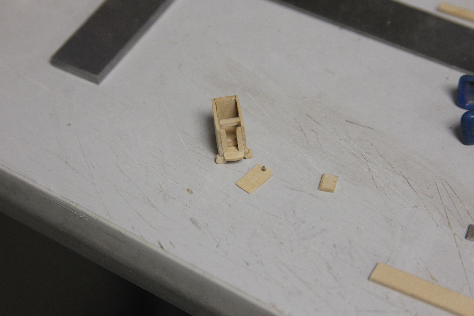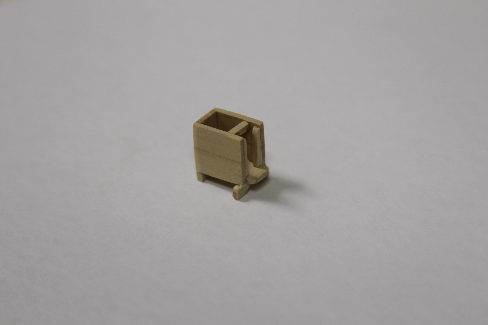 I went back to the “Fully Framed Model” series to get some inspiration – as well as some really nice pieces done by other ship builders. First, I measured out the amount of space that we have between the mast and the grate and it’s limited at best. Not much room to play with there. I started with my leftover boxwood strips to frame out the basic boxes. I use boxwood because it’s a nice dense wood that is perfect for carving small parts without leaving the wood ‘hairy’ and sands smooth really nicely. I added some framing and feet, leaving a little extra space in the front of the pump for the doorway that opens up for the pump dale (where the water drains out onto the deck then ultimately through the scuppers (where water drains off the deck over the side. Then I carved out little doors that are used to close off the pump when it’s not in use.