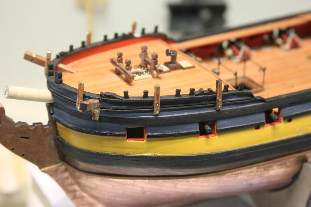 In addition to the 6-pounders along the deck, the Pegasus also had an addition 16 swivel mounts for 1/2 pound falconet guns along the railings on both the forecastle and quarterdeck. Although it was more likely that there were about 8 to 10 guns that were switched along the mounts when needed, it’s much more fun (of course) to fill all the mounts.