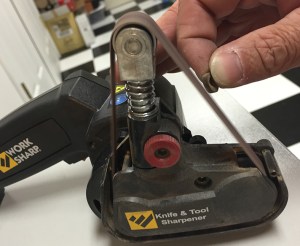 I rounded and sanded them using this handy little tool that my mother bought me as a housewarming gift. It’s actually a knife / tool sharpener, that comes with a variety of different sanding belts. When you take the knife adapter off, it makes for a great miniature belt sander.