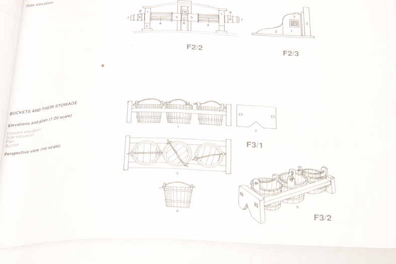 Before I could layout where the cleats, rails, and sheaves (a small pulley the rigging passes through) I first had to layout the standing and running rigging and where it would terminate on the different decks. Once again, I turned to Pastor’s book to compare the best guess for the rigging with the plans supplied in the kit.