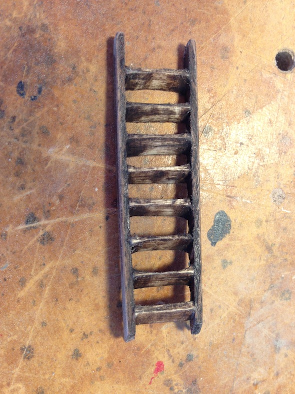 The ladders are created exactly how one would expect – each piece is cut then glued together. It takes a great deal of patience and persistence to glue the ladders with all of the “steps” even and secure.