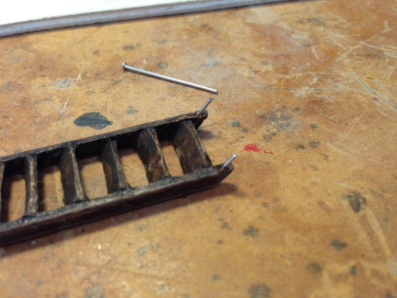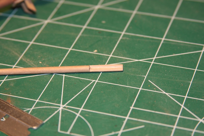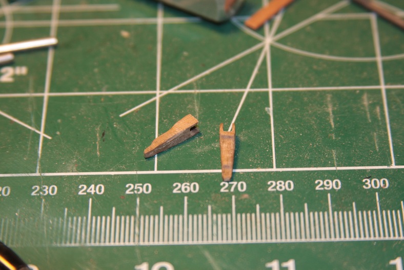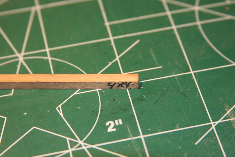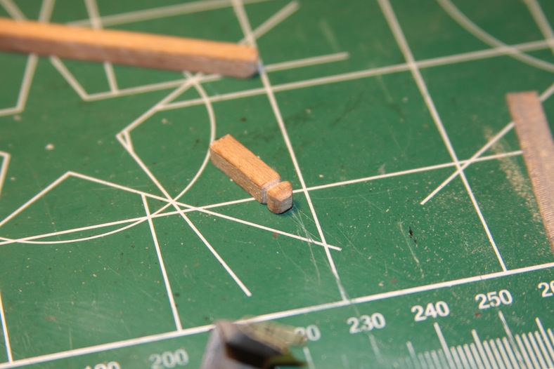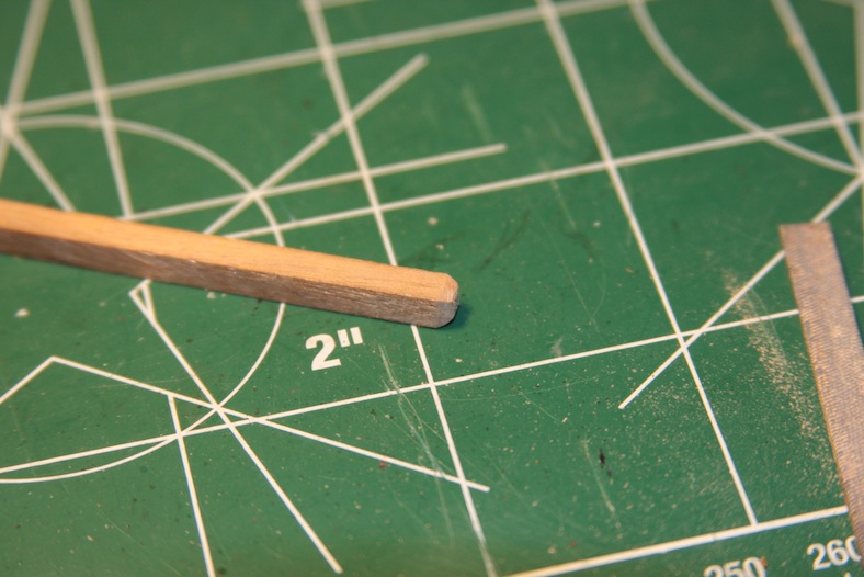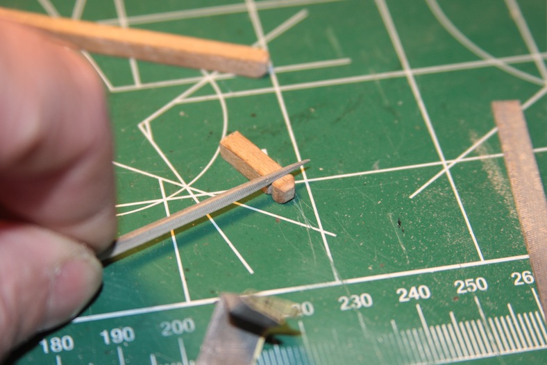 I used a 4mm x 4mm piece of walnut and bevelled the top edges. I’ve stayed away from much ornamentation on this build because I truly believe the Santa Maria had very little. However, I wanted to include a little bit of craftsmanship that I think every vessel would have likely had. So, I used one of my mini pin-files (which sounds redundant) to notch out the top of the posts.