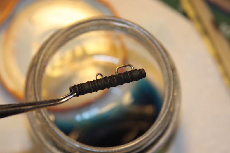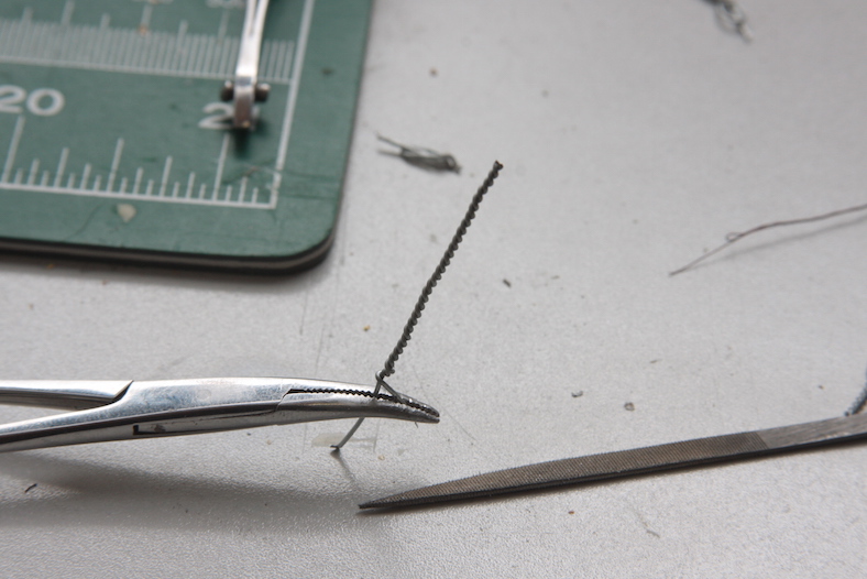 I settled on a very thin white glue that’s primarily used for building scenes on train sets. It dries clear, and takes a while to harden so you can manipulate the coil. The challenge is, holding the coil in place until it is tacky enough to stay.