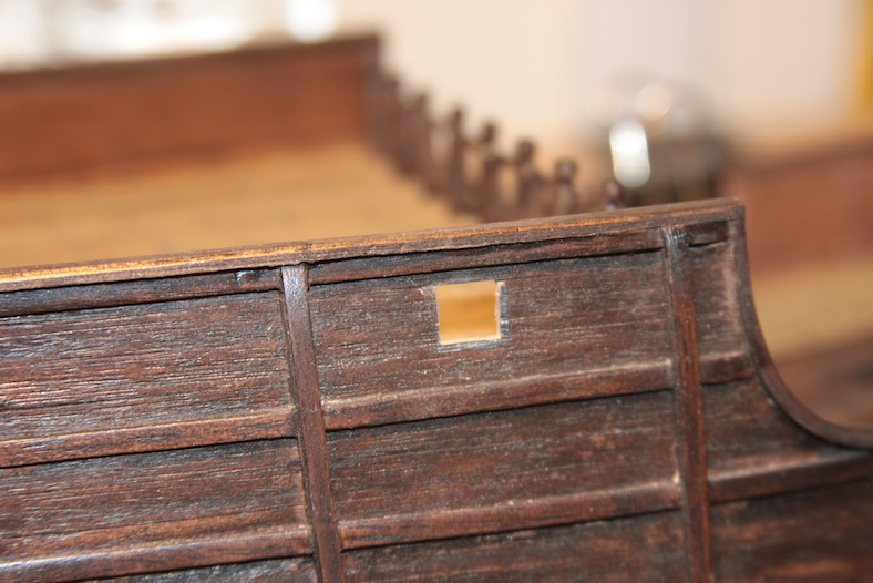 I then moved on to the gun ports in the side of the ship. It always makes me very nervous to cut into the ship. Obviously making any kind of error would be very difficult to correct. So I spend quit a bit of time planning before I actually cut into the ship.