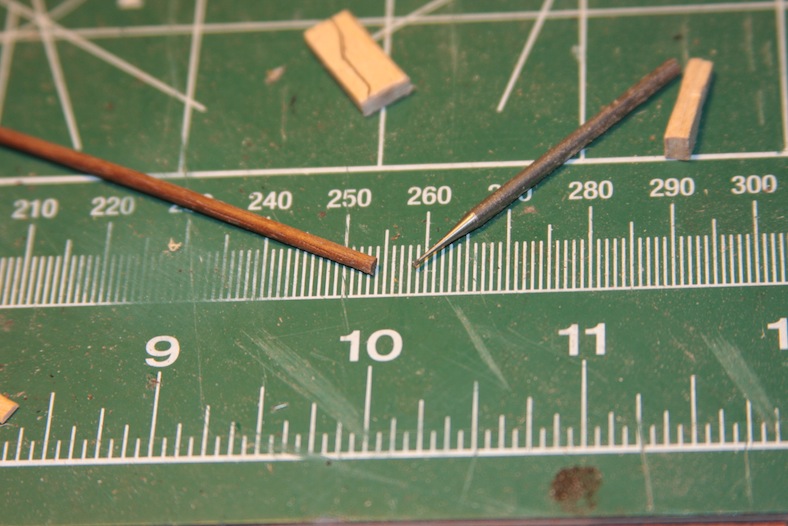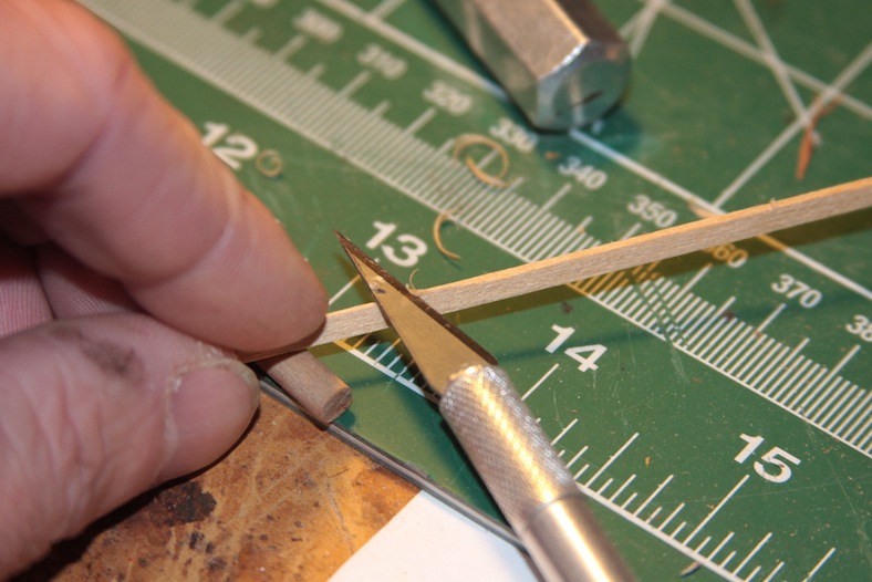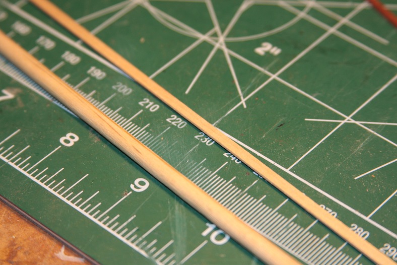 To build my water pump I started with a 5mm diameter dowel and thin basswood strips.