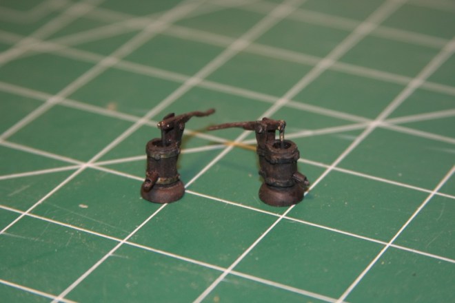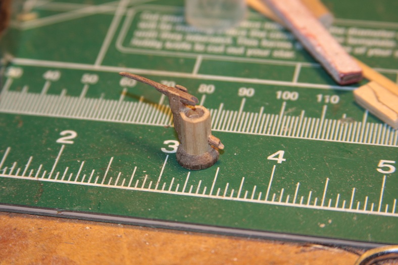 Although the Xavier Pastor book I have been continually referencing lists the Santa Maria as most likely having a single turn-crank water pump, every other reference I’ve seen has shown a more traditional pump-handle style water pump. Often times there are two, as in later ships. When it comes down to it – I think the pump-style handle looks better, so I went with that.