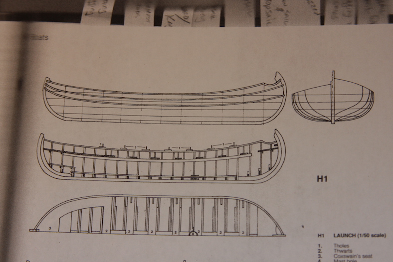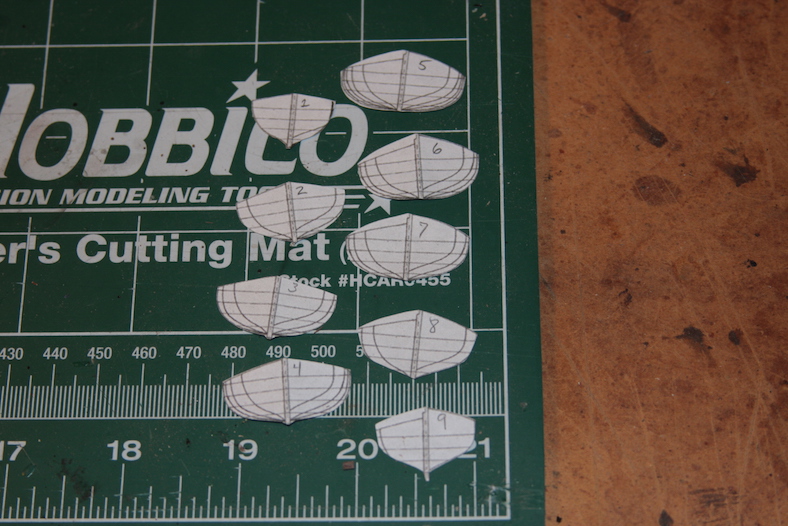 The second, is a larger “launch.” After a couple of failed attempts, I used a similar method that I used with the ‘lifeboat’. I took the diagrams from Pastor’s reference, made scaled copies, then cut out along the lines to create bulkheads to plank.