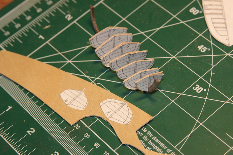 To shape the bulkheads properly, I just glued my paper templates to some thing plywood – knowing I would sand out the hulls later.