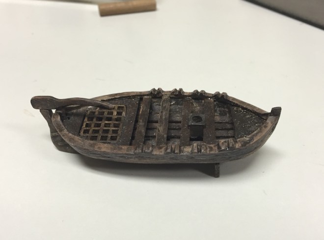 I’ll ultimately also add oars, some rope, and other small additions that represent the clutter that was often found in the small vessels. I suspect they were often used as storage bins much the same way we all seem to have a “junk drawer” somewhere around the house.