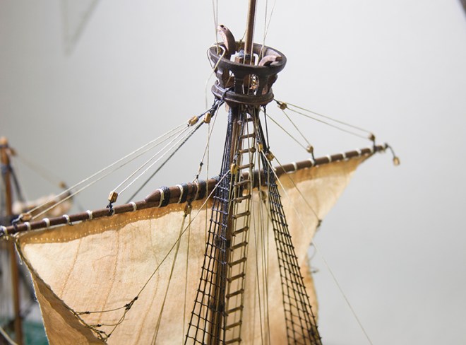 Like anything else with the Santa Maria there seems to be a variety of speculation regarding pinrails, cleats and the like. I’ve had to scan the rigging over and over to try and figure out where these fixtures would have been.