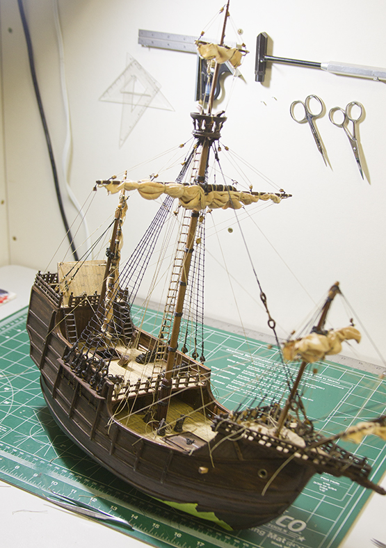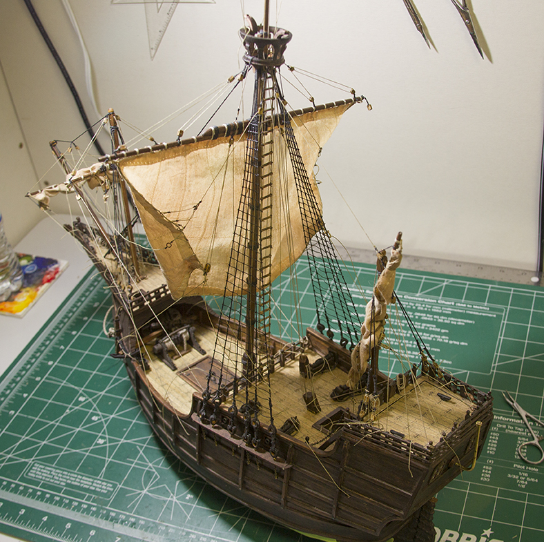 Although most of the research I’ve read indicates that the Santa Maria was by all accounts a very basic vessel, many of the models being manufactured and displayed have an overwhelming amount of embellishments and accouterments common to Spanish vessels. However, many of these details were not evident until decades or even centuries later. I have chosen to keep this version of the Santa Maria realistic, but I am taking some small liberties that have not been well documented. For instance, I wanted to include more decorative windows on the rear of the captain’s cabin that were likely present.
