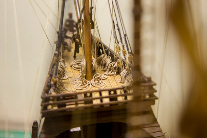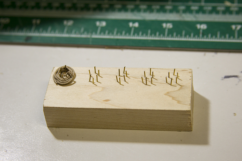 For the ropes coils themselves, I build a small jig to wrap and glue some of the coils that lay freely. However, most of the coils were wrapped individually around the rigging lines.
