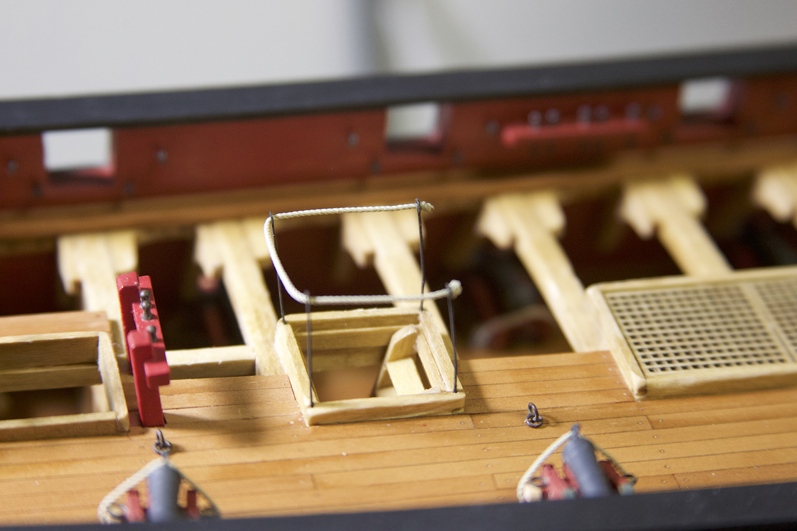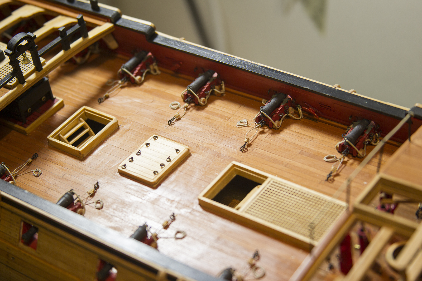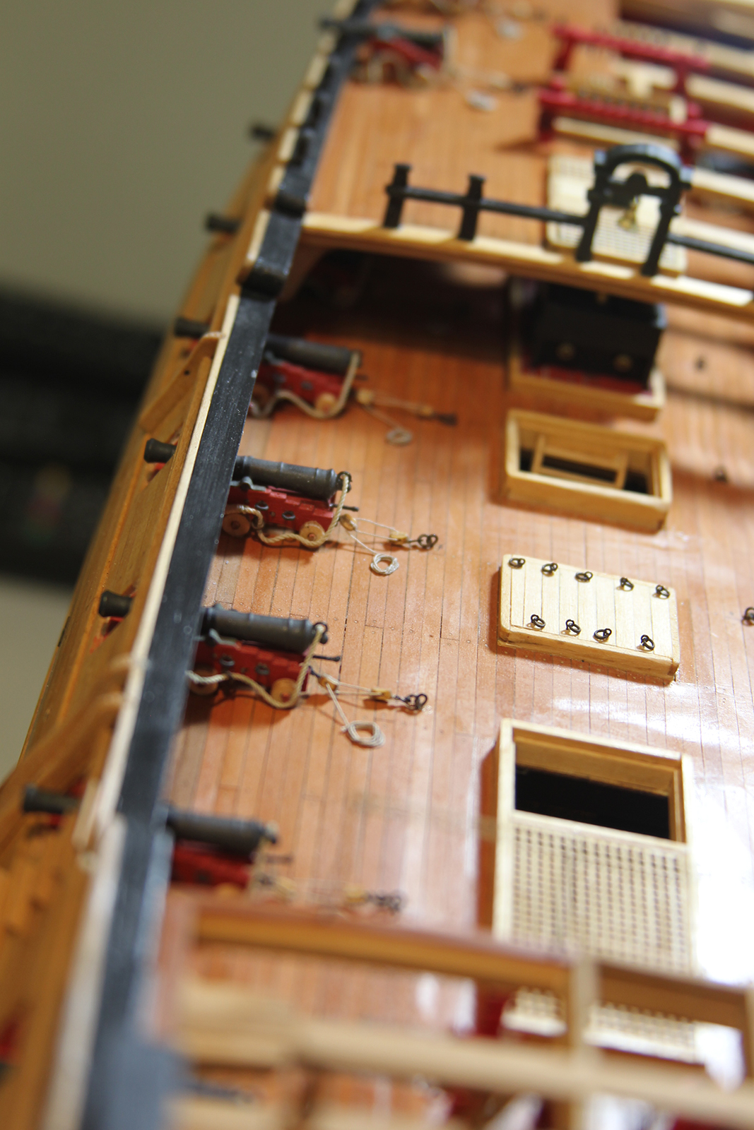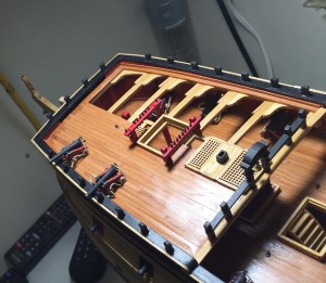 The alternative, if I still wanted to rig gun tackles, was to only rig the gun tackles on the accessible cannons on the open lower deck and open upper deck and leave the rest unadorned. I really didn’t like the idea of that kind of consistency.