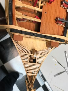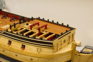 At any rate – I’m not overly confident in my decision, as there is a definite disparity in having the gangways a different color than the rest of the planking. A this point, I’m pretty sure I don’t want to tear it all up and re-do it to see how the Pear looks. I do intend to trim the smaller boats with some pear to bring it all together.