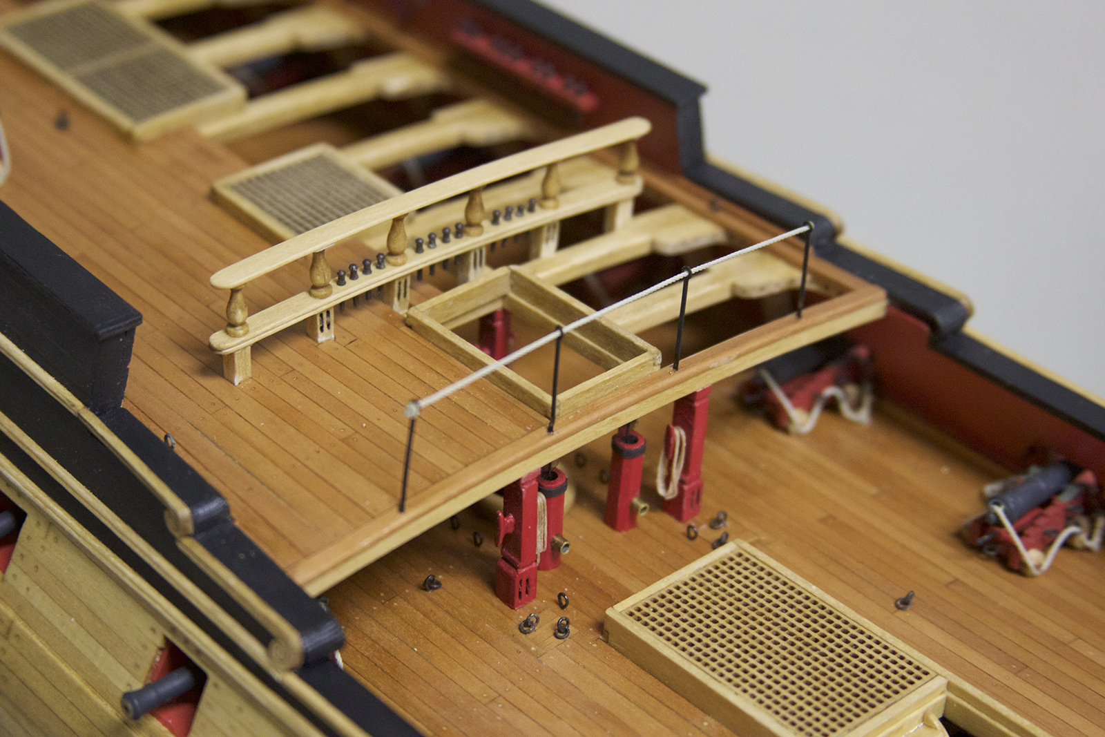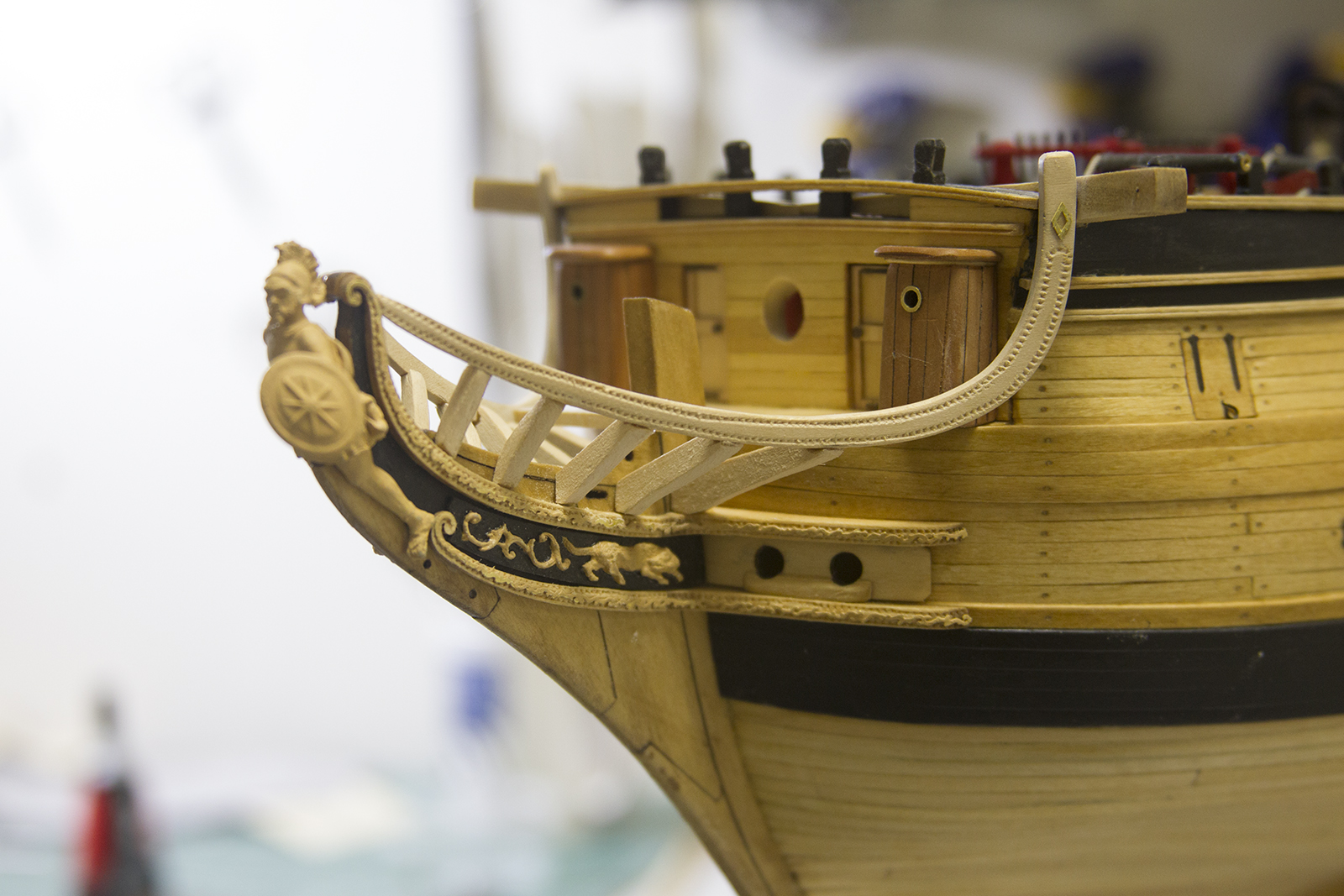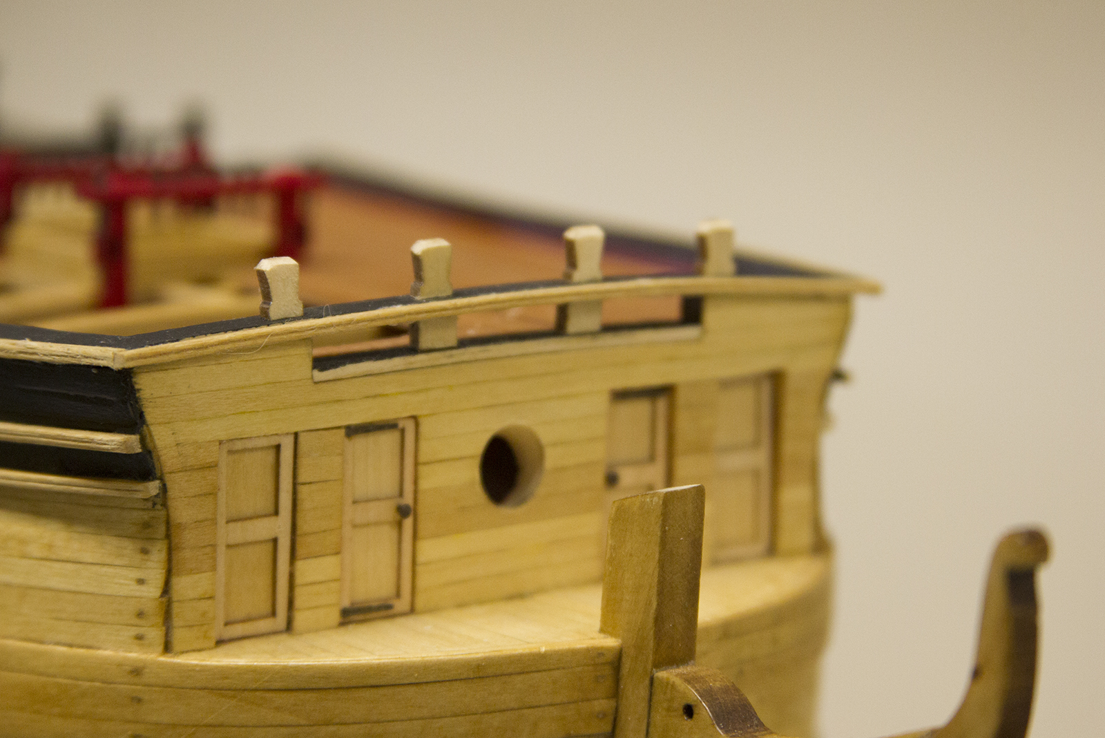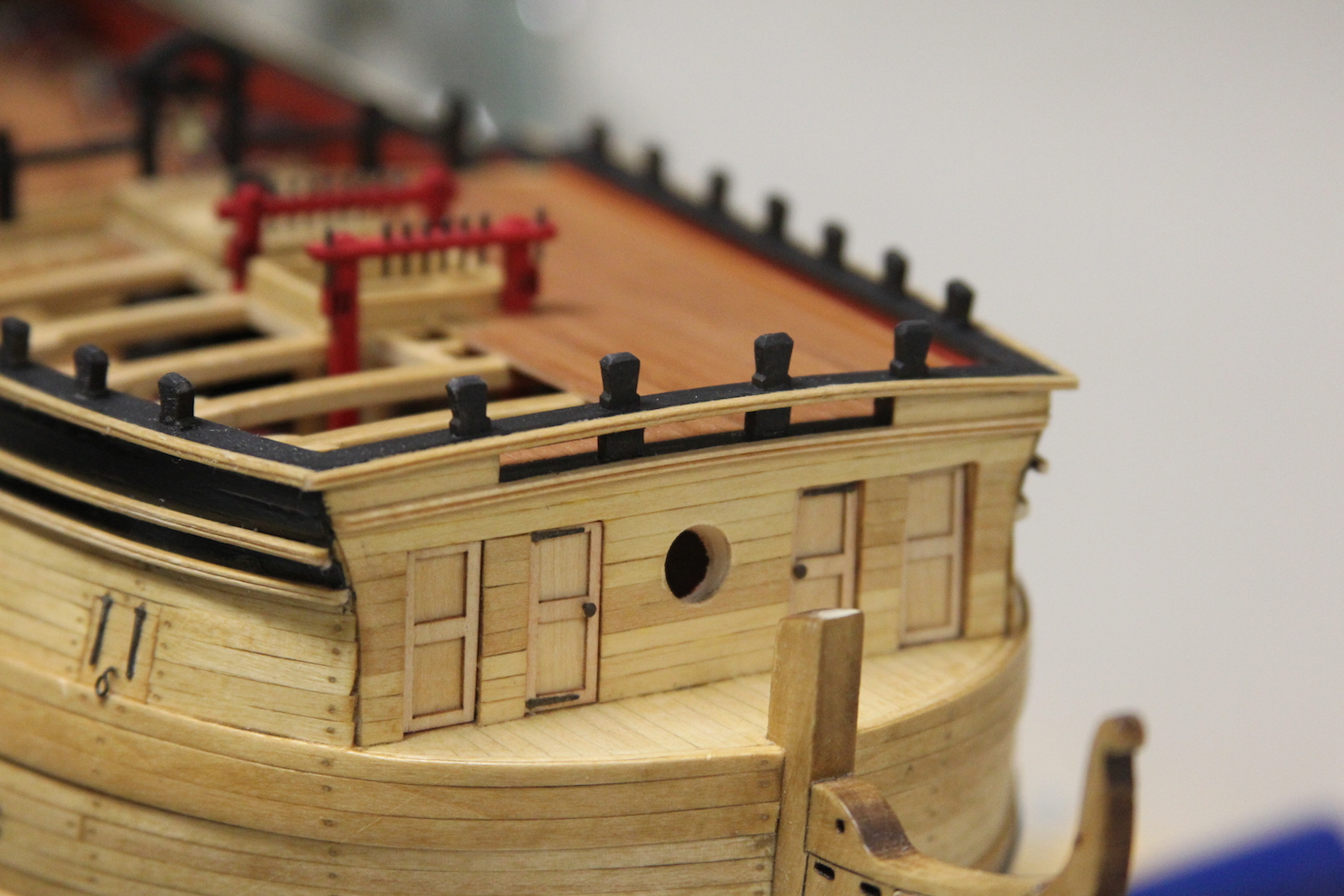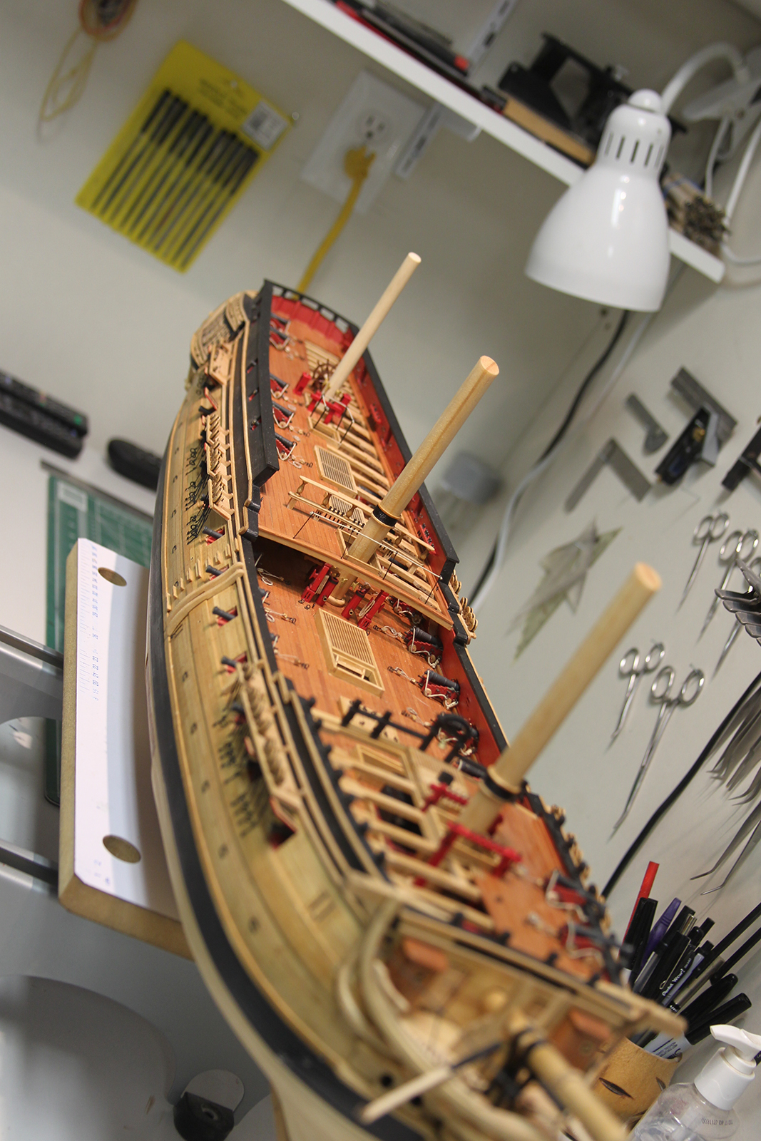 Finally, the birthing rail (small metal railing along the bow) is added.