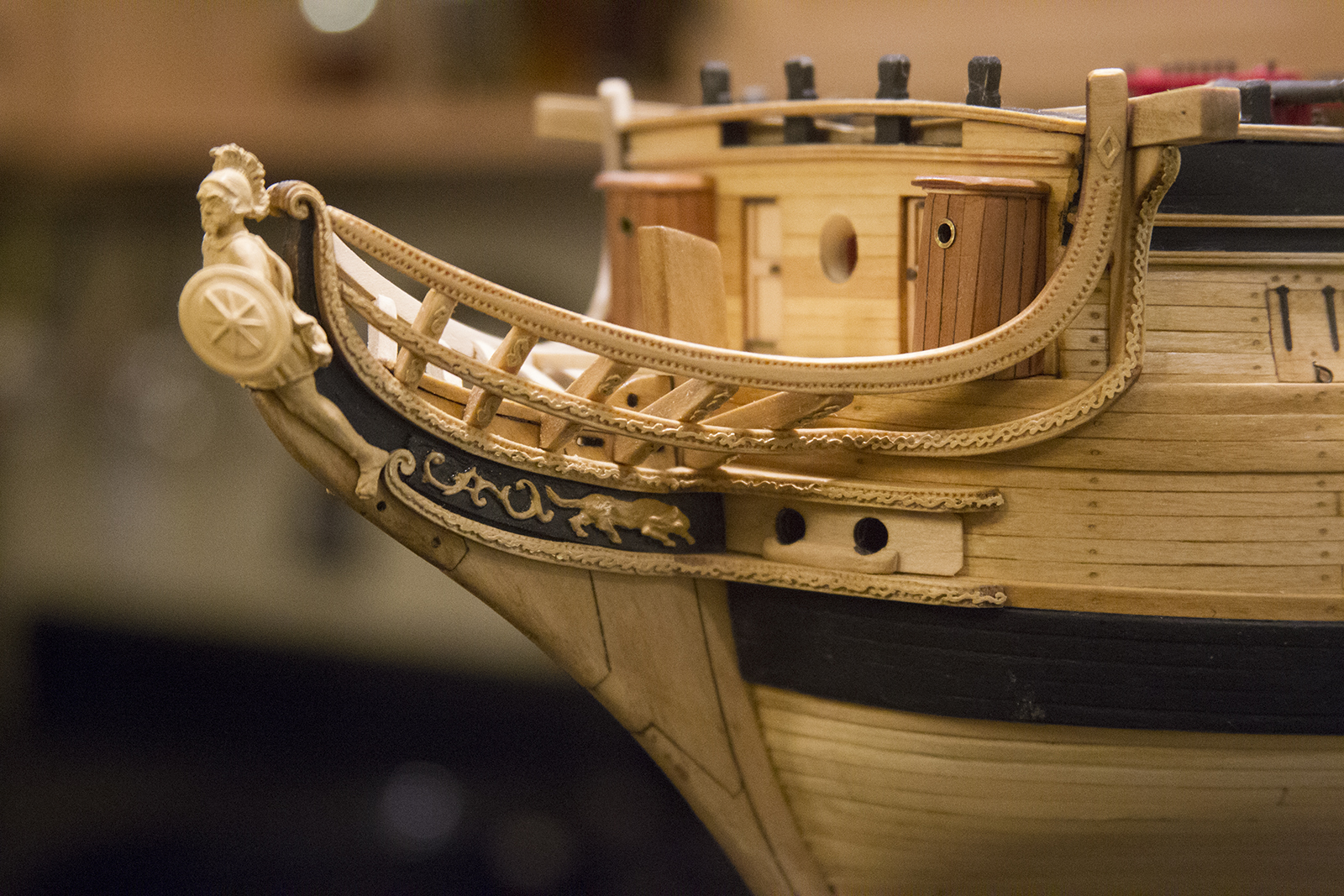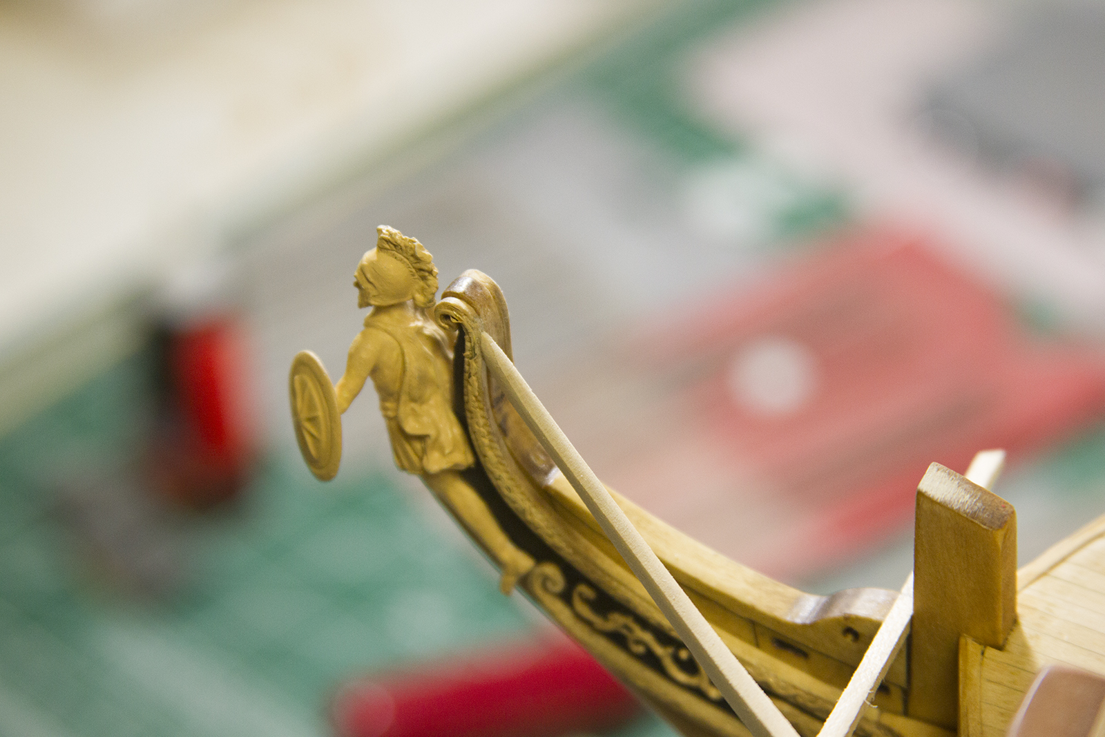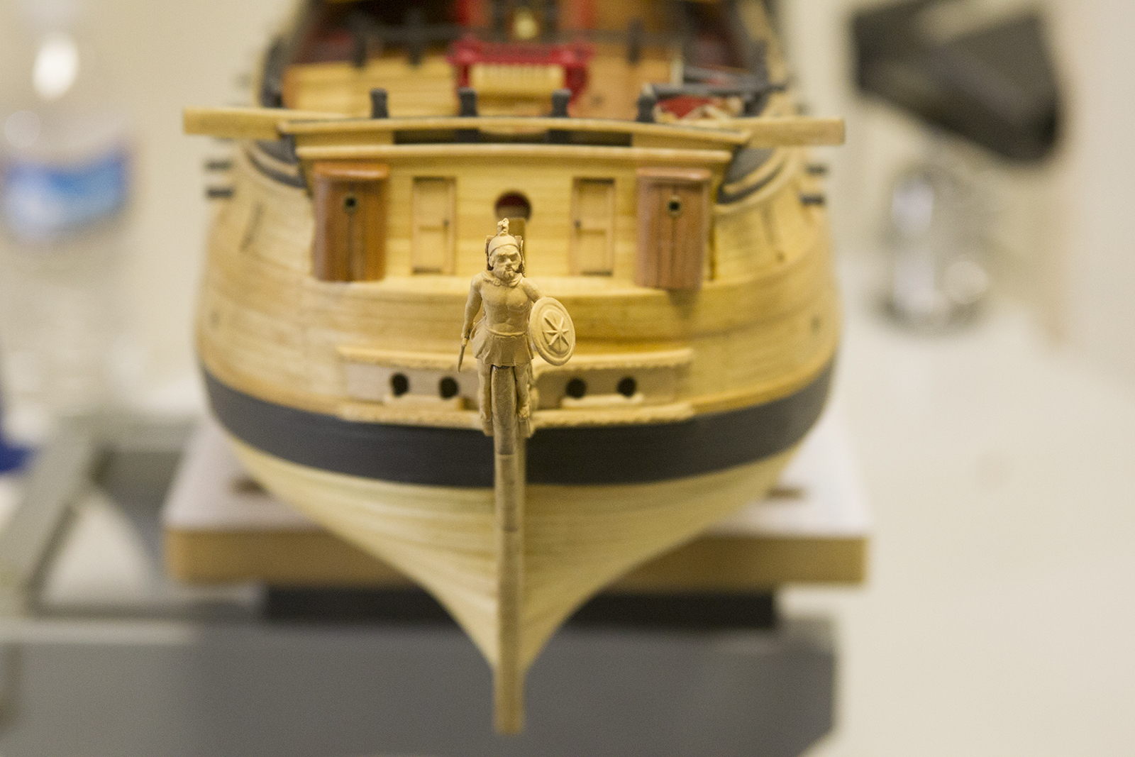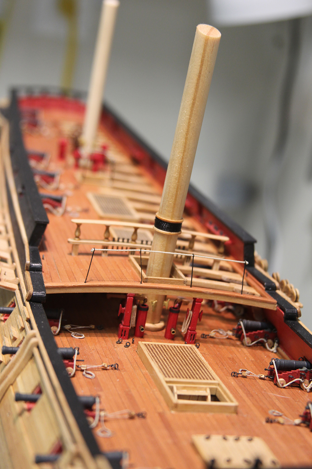Finally, the birthing rail (small metal railing along the bow) is added.