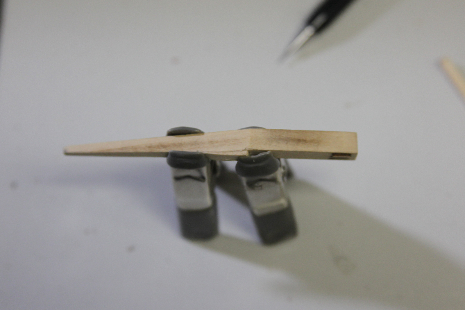 Nothing particularly complicated with the anchors. As with most of the laser cut parts, the anchor stocks are pretty beefy and required a fair amount of sanding. I used pin files to notch them of course, but the wood itself is soft, so I used nothing grittier than 400 grain sandpaper to ease them down bit by bit and bevel them.