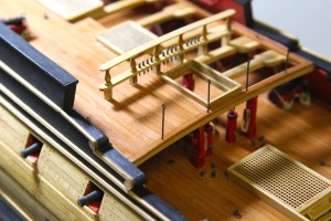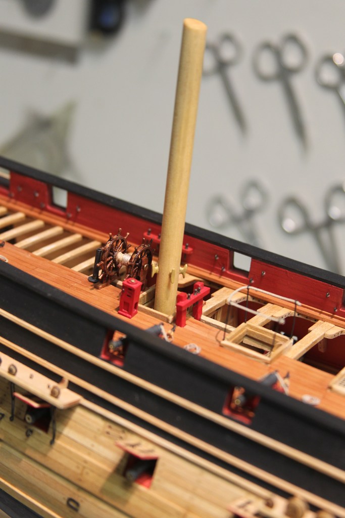 As I near the last stretch of the build, much of the work concentrates on small on board details. I’d been waiting for some time to erect the ships masts. Once again, as this is an “Admiralty” model, it’s not fully rigged, but rather supports partial masts.