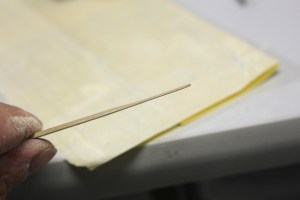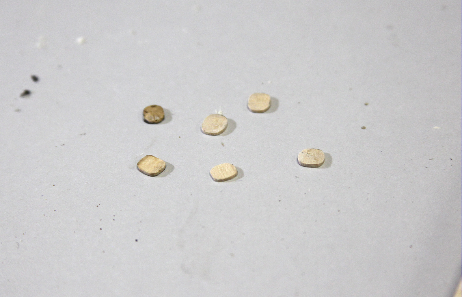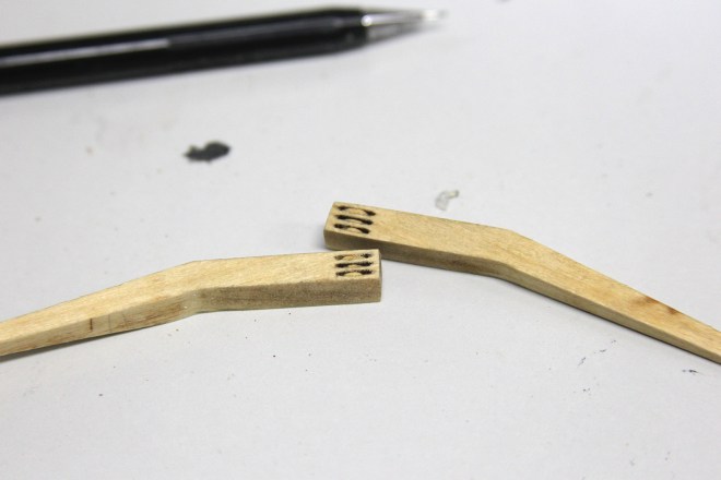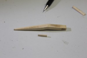 For Attempt #2 I used a softer, but more dense piece of wood for the framing of the wheel. This wood is actually from an old pen case that I had from somewhere. You never know what you’re going to dig up in the extra supply bin.