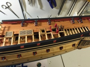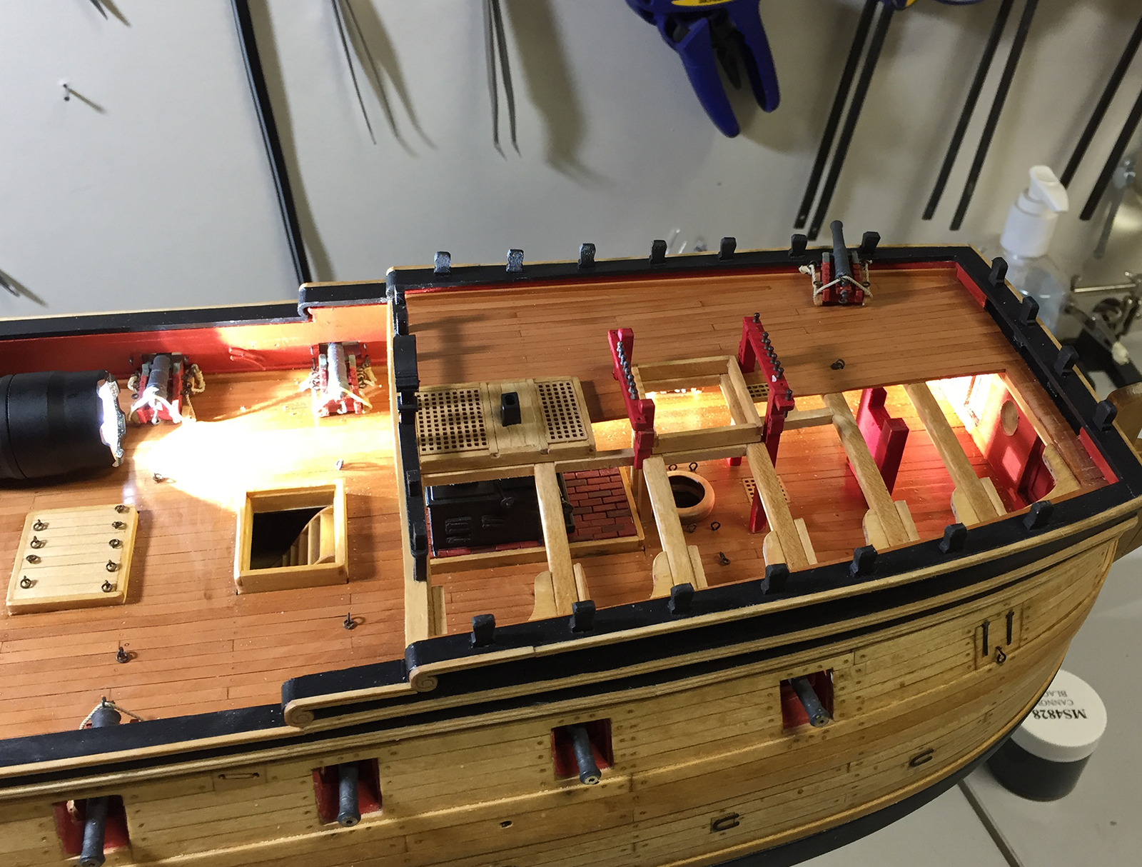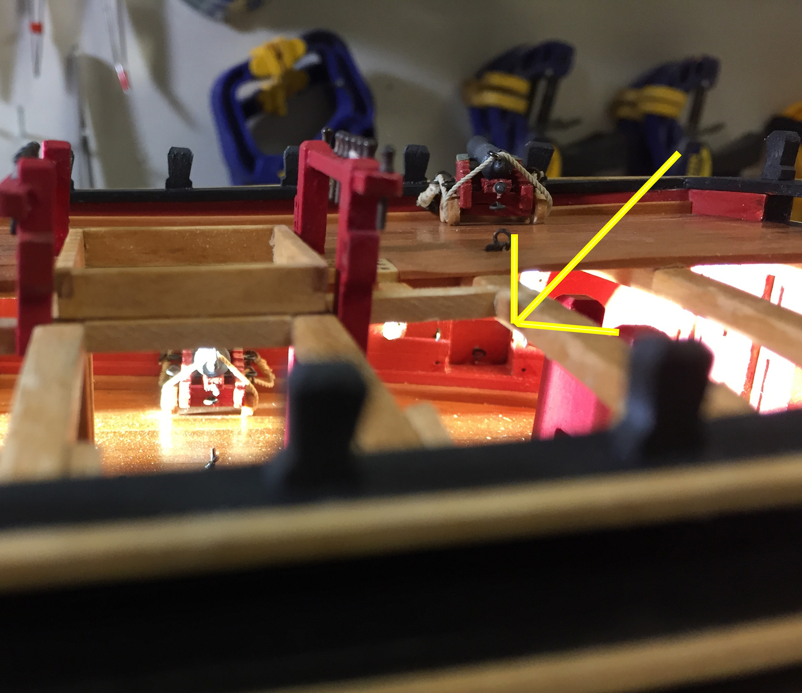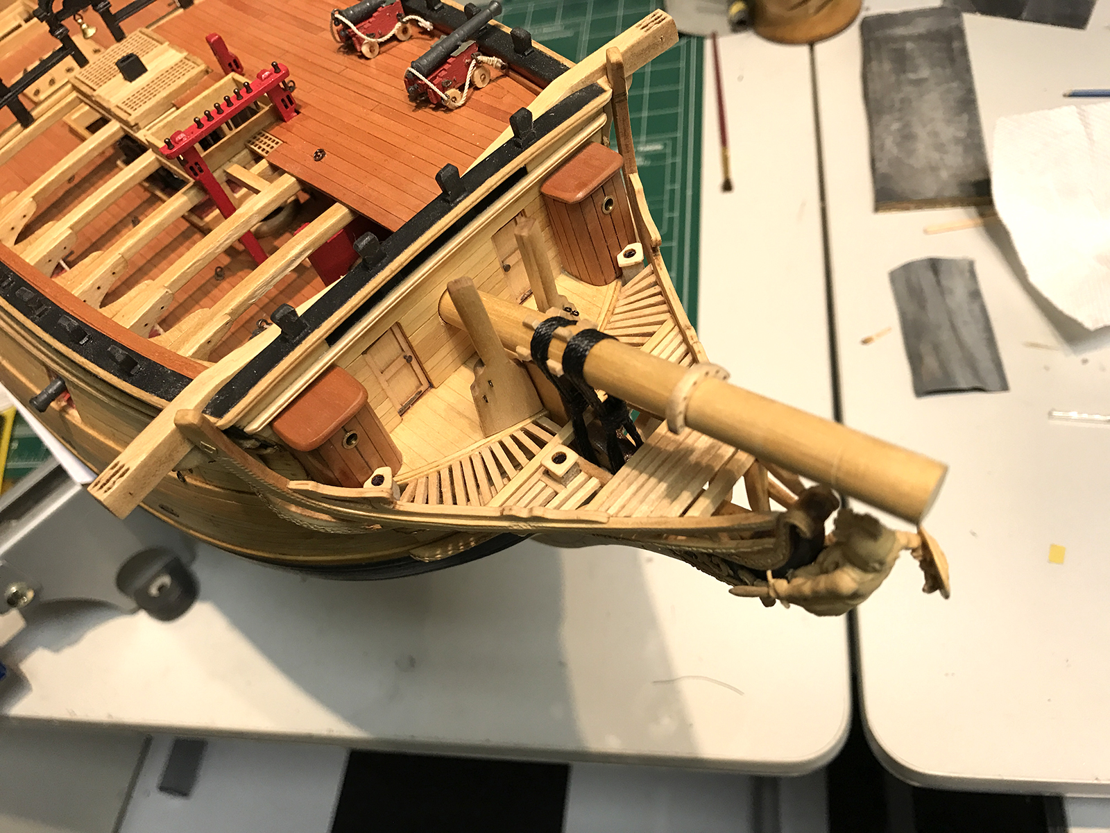 As it turns out – replicating the cannon was the easy part. The difficult part would be placing the cannon beneath the already built foredeck and aft. Obviously, the other cannon were placed earlier in the build, then the upper decks were planked over the top.