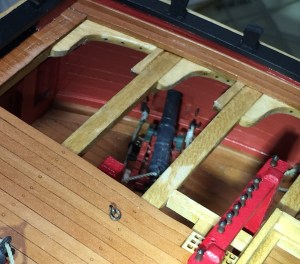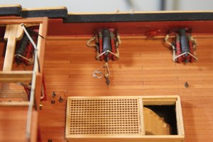It was then that I realized, rigging the gun tackles for THESE guys – the cannon that you could see through the open deck, but couldn’t really get to – was going to be impossible. I made a few aggravating attempts, then after much profanity – bailed on the idea.