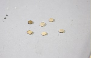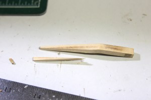However, because the kind of wood I used was hard, but a little too porous and brittle, it crumbled when I attempted to cut it off the end of the dowel with it’s new shape. Drat.