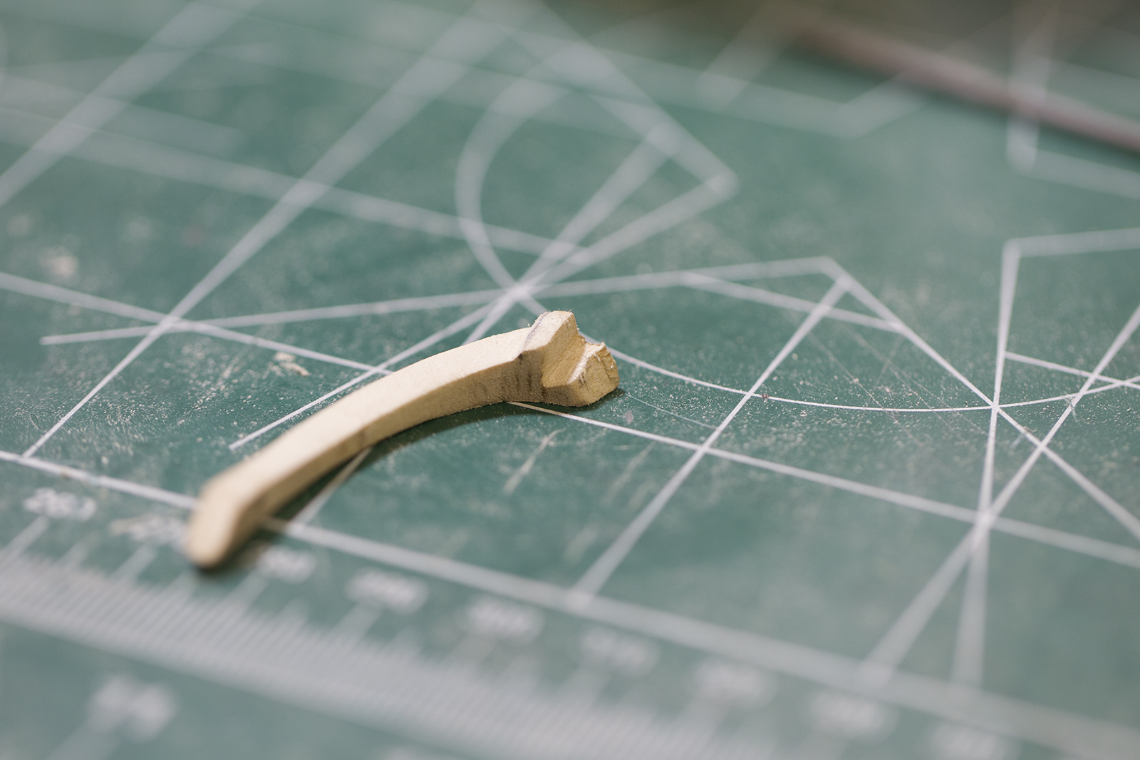 I started with the cathead knee, carving out a spot for it along the side of the ship and making an adjustment where the bottom meets hull.