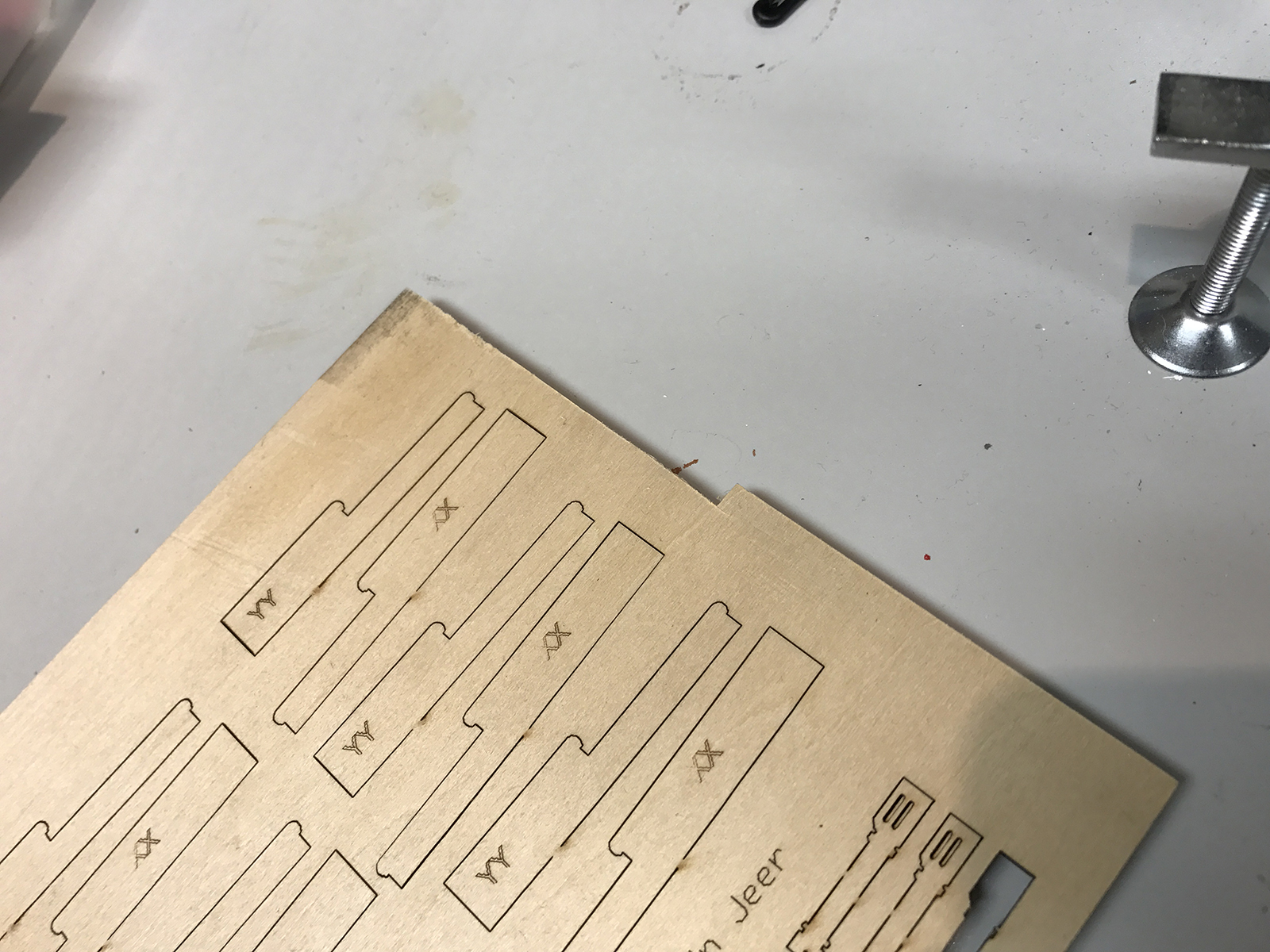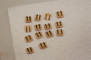 Trying to clean the lids just smeared the paint. I eventually recut even more lids, then sanded the tops and sides to get rid of as much paint as possible and clean them up for further assembly.