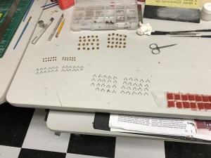 Down the stretch… and starting work on the out board hull details. Much of this will be repetitive, assembly line style work. I’ve found – at least for myself – that when I’m assembly a number of similar items, it’s always important to make sure I focus on each item individually to make sure they are precise and consistent.