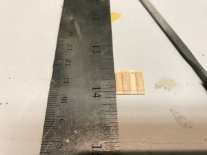 Moving on to the inboard details. Most of these things are pretty straightforward. The floorboards are strips of basswood measured and glued in making sure there is enough space between for drainage. The seats are strips of basswood planked together with “caulking” in between simulated with pencil lead. I just planked six or seven strips together at about 6 inches long so I’d have enough wood to work with for both small boats.